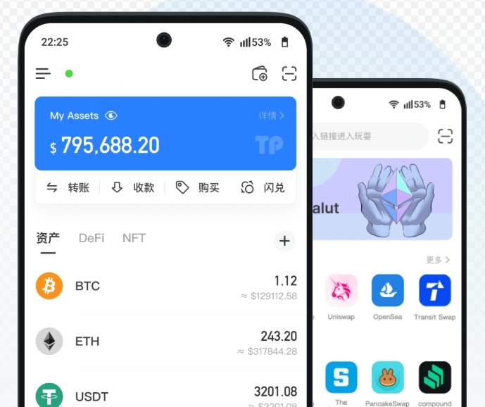 TokenPocket是一款多链数字资产管理钱包,支持BTC、ETH、BNB等多种主流币种和NFT。它提供了安全的存储、便捷的交易和全面的NFT管理功能。
